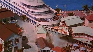 The only problem is Gieger (Dafoe), a former employee of the cruise liner they are on , who was fired for getting sick, and now is taking the boat hostage, and sending it right into an oil tanker – at maximum speed… for a cruise liner… all 16 knotts (or 30kmh or 18mph)